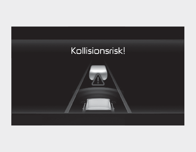 Det framåtriktade kollisionsvarningssystemets primära funktion är att varna och styra fordonet beroende på kollisionsrisken: ‘Collision Warning’ (Kollisionsrisk!), ‘Emergency Braking’ (Panikbromsning!) och 'Stoppa fordonet och avsluta bromskontroll'.