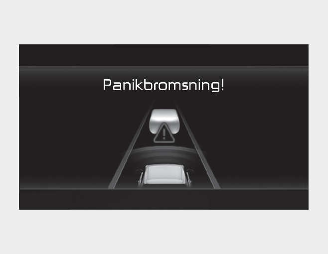 I en panikbromsningssituation hjälper funktionen till att bromsa med stark kraft för att förhindra kollision med fordonet, fotgängaren eller cyklisten framför bilen.