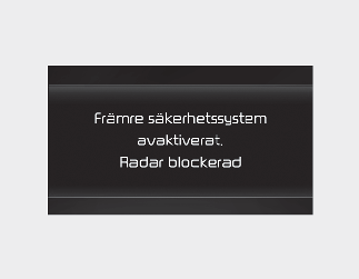 “Forward Safety system disabled”. Varningsmeddelandet “Radarn skymd” visas (stängs av efter en viss tid) och varningslamporna