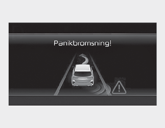 Bromskontroll kommer att avslutas när systemet panikbromsar fordonet i ca 2 sekunder.