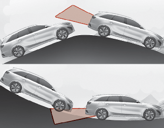 Assistans för Undvikande Död-Vinkel-Kollision kanske inte fungerar ordentligt när du kör i backar. Funktionen upptäcker eventuellt inte fordonet i körfältet intill eller tolkar av misstag marken eller en konstruktion som ett fordon.