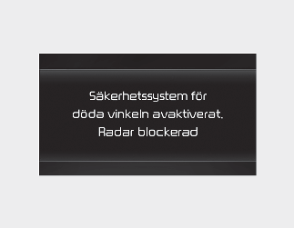 Om detta inträffar kommer varningsmeddelandet “Blind-Spot Safety system disabled. Radar blocked” (Säkerhetssystem för döda vinkeln avaktiverat. Radar blockerad) visas i klustret.