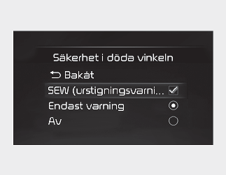 Föraren ska alltid vara medveten om sin omgivning. Funktionen kan inte hjälpa dig om “Assistanssystem för säker avstigning” väljs bort.