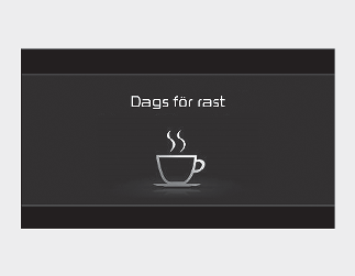Meddelandet “Överväg att ta en paus” visas i klustret, och en varningssignal låter för att uppmana föraren om att ta en paus när förarens uppmärksamhetsnivå är under 1.