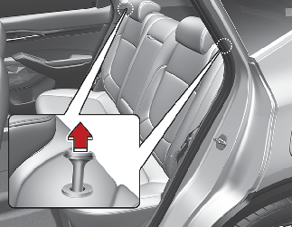 When you fold the rear seatback, insert the buckle in the pocket between the rear seatback and cushion. Doing so can prevent the buckle from being damaged by the rear seatback.