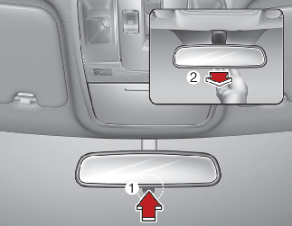 Pull the day/night lever toward you (2) to reduce the glare from the headlights of the vehicles behind you during night driving.