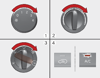 The outside (fresh) air and air conditioning will be selected automatically.