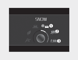 If you press the "DRIVE/TRACTION" mode button, the driving mode is changed from Driving control to Traction control. You can select SNOW (1), MUD (2) or SAND (3) mode by rotation the knob. If you press the "DRIVE/TRACTION" mode button again, the driving mode is changed from Traction Control to previous driving control.