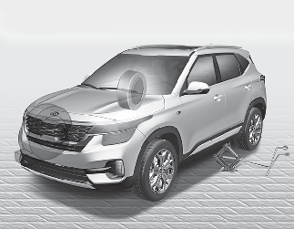 • To prevent vehicle movement while changing a tire, always set the parking brake fully, and always block the wheel diagonally opposite the wheel being changed.