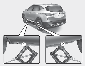 To reduce the possibility of injury, be sure to use only the jack provided with the vehicle and in the correct jack position; never use any other part of the vehicle for jack support.