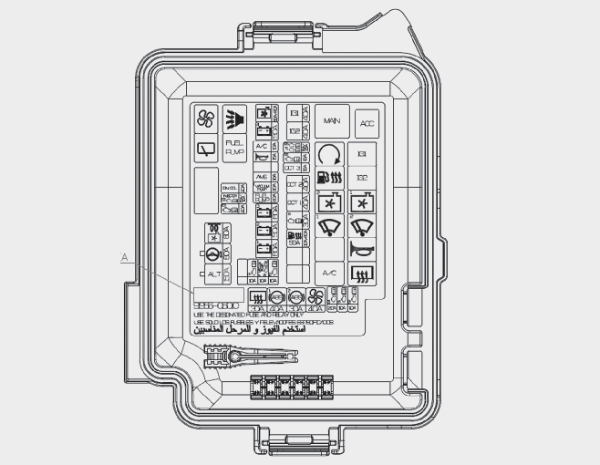 ICU Junction Block (Fuse - Driver Seat Manual Switch, AMP (Amplifier), Power Window Relay RH, Driver Safety Power Window Module, Power Window Relay LH, Driver Safety Power Window Module, Front Air Ventilation Seat Control Module, Sunroof Unit, Tail Gate Relay) |