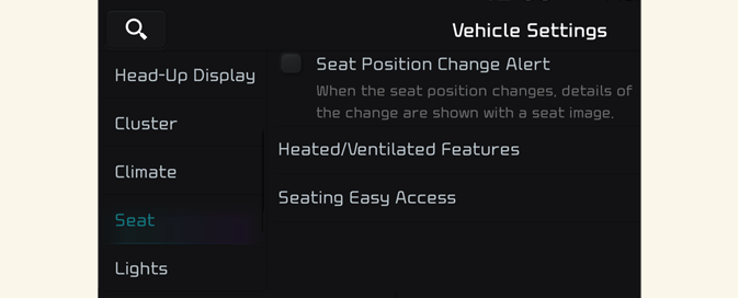 Уведомление об изменении положения сиденья: при изменении положения сиденья на экране появятся сведения об изменении и изображение сиденья.