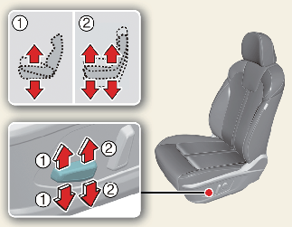 Pro zvýšení polohy přední části polštáře sedadla přitáhněte přední část ovládacího spínače (1). Pro její snížení přední část ovládacího spínače stiskněte.