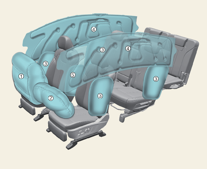 * Skutečný tvar airbagů se může od vyobrazení lišit.