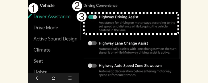 Nastavení asistenta jízdy na dálnici (HDA)