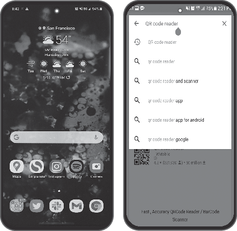 Åpne Play Store: Søk på QR code reader, og installer appen. Åpne QR code reader på android-enheten din og pek på koden.