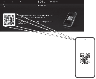 Scanner QR-kode: Trykk på [SETUP] > [Generelt] > [Systeminfo] > [Brukerhåndbok]. Scan QR-koden og trykk på lenken til koden for å gå til nettsiden.