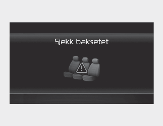 Når du åpner frontdøren etter åpning og lukking av bakdøren og slår av motoren, får du opp varselmeldingen "Check rear seats" (Kontroller baksetene) på instrumentpanelet.