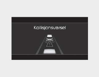 Mens smart hastighetskontroll er i drift og det er høy risiko for kollisjon med kjøretøyet foran, vil varselmeldingen 'Collision Warning (kollisjonsadvarsel)' vises på instrumentpanelet, og det vil høres en varsellyd for å varsle føreren. Du må alltid følge med på veien og, ved behov, trå på bremsepedalen for å senke hastigheten din for å opprettholde en sikker avstand.