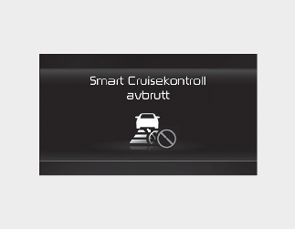 Hvis smart hastighetskontroll er midlertidig avbrutt, vil varselmeldingen ‘Smart Cruise Control canceled’ (Smart Cruisekontroll avbrutt) vises på instrumentpanelet og det vil høres en varsellyd for å varsle føreren.