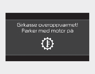 Advarselen vises et øyeblikk mens girkassen kjøles ned.