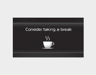 The 'Consider taking a break' message will appear on the cluster and an audible warning will sound to suggest that the driver take a break, when the driver's attention level is below 1.