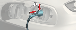 أمسك مقبض موصل الشحن (1) واسحبه إلى الخارج.