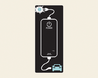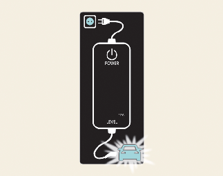 تم التوصيل بالسيارة (الطاقة مضيء أخضر، العطل وميض أحمر)