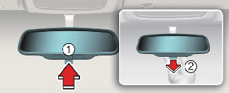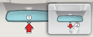 اسحب ذراع الرؤية النهارية/ الليلة (2) لتقليل وهج المصابيح الأمامية أثناء ظروف القيادة في الإضاءة المنخفضة وخلال الليل.