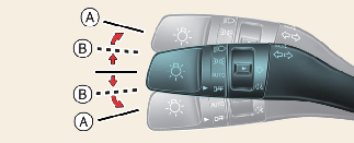 حرّك ذراع إشارة الانعطاف لأعلى أو لأسفل (ب).