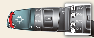 لإضاءة المصابيح الأمامية يجب أن تكون السيارة في وضع ON (تشغيل).