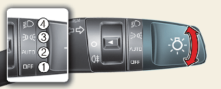 وبعد سحب الذراع نحوك وتحريره سيعود مؤشر الشعاع العالي إلى وضعه الطبيعي (الشعاع المنخفض). ولا يلزم أن يكون مفتاح المصابيح الأمامية قيد التشغيل لاستخدام خاصية الوميض هذه.