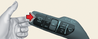 اسحب الرافعة تجاهك برفق لرش سائل الغسل على الزجاج الأمامي.