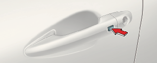 عند مغادرة السيارة بمفتاح ذكي، تأكد من إغلاق جميع الأبواب (بما في ذلك غطاء المحرك والباب الخلفي) وفحصها بالضغط على زر مقبض الباب الأمامي. إذا تم إلغاء الضغط على الزر، يتم فتح قفل الأبواب.