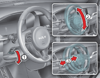 اضبط عجلة القيادة على الزاوية (2) والارتفاع (3) المرغوبين.