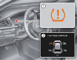 تتمثل ميزة أمان إضافية في تزويد السيارة بنظام مراقبة ضغط الإطارات الذي يضيء مؤشر انخفاض ضغط الهواء في الإطارات عندما يقل ضغط أحد الإطارات أو أكثر بنسبة كبيرة. وبناء عليه، عندما يضيء مؤشر انخفاض ضغط الهواء في الإطارات، يجب عليك التوقف وفحص الإطارات في أقرب وقت ممكن ونفخها إلى الضغط المناسب. حيث تتسبب القيادة باستخدام إطار ذي ضغط منخفض بنسبة كبيرة في زيادة حرارة الإطار، وقد تؤدي إلى تلف الإطار. كما أن نقص ضغط الإطار يقلل من كفاءة الطاقة الكهربائية والعمر الافتراضي لمداس الإطار، وقد يؤثر على القدرة على قيادة السيارة وإيقافها.
