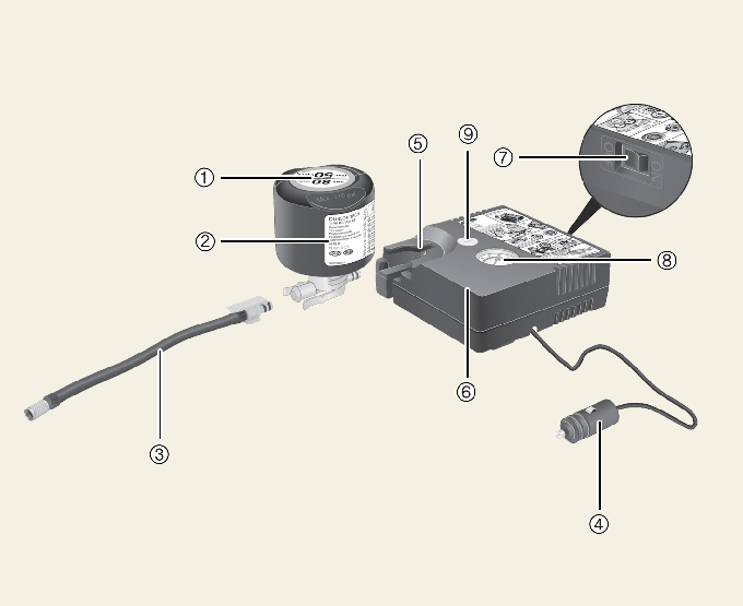 مكونات طقم إصلاح الإطار المثقوب