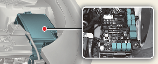بعد فحص لوحة الفيوزات في حجيرة المحرك، قم بتركيب غطاء لوحة الفيوزات بإحكام من خلال صدور صوت الطقطقة المسموع. في حالة عدم القيام بذلك، فقد تحدث أعطال كهربائية بسبب ملامسة المياه.