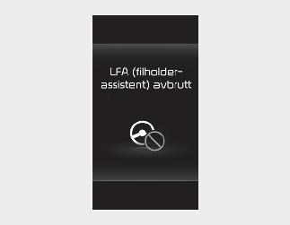 Hvis føreren fortsatt ikke har hendene på rattet etter meldingen om hender av, blir meldingen "Kjørefeltassistanse (LFA) avbrutt" vist, og kjørefeltassistansen blir automatisk avbrutt.