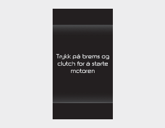 Trå clutchpedalen helt inn og sett girspaken til N (nøytral). Hold inne clutchpedalen og bremsepedalen mens du vrir ENGINE START/STOP (start/stopp-knappen) til startposisjon. Hvis statusen endres til ACC, vises dette på instrumentpanelet ved hjelp av følgende melding.