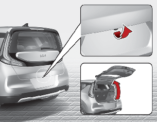 Si está desbloqueado, el portón trasero puede abrirse pulsando la manilla y tirando de ella hacia arriba.