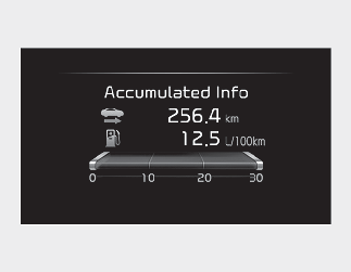 The trip computer mode displays information related to vehicle driving parameters including Accumulated info, Driving information, and so on.