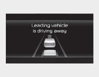 When a detected vehicle in front departs from a stop, Leading Vehicle Departure Alert will inform the driver by displaying the 'Leading vehicle is driving away' message on the cluster and an audible warning will sound.