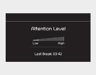 The basic function of Driver Attention Warning is to inform the driver the 'Attention Level' and to warn the driver 'Consider taking a break'.