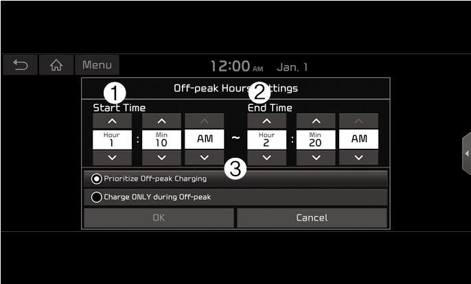 Off-peak tariffs prioritized: If selected, reserved charging performs by making the most of the off-peak time. If not sufficiently charged within the off-peak time, it may keep on charging even after the off-peak time