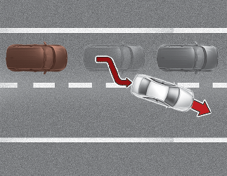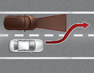 When a vehicle changes lanes in front of you, Forward Collision-Avoidance Assist may not immediately detect the vehicle, especially if the vehicle changes lanes abruptly. In this case, you must maintain a safe braking distance, and if necessary, depress the brake pedal to reduce your driving speed in order to maintain a safe distance.