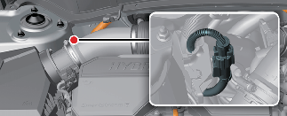 Débranchez le connecteur de la batterie auxiliaire 12 V situé à l’intérieur du compartiment moteur pour couper l’alimentation de la batterie auxiliaire 12 V.