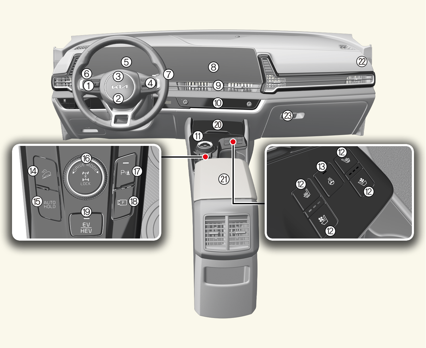 Bouton EV/HEV (démarrage/arrêt) Plus de détails