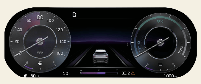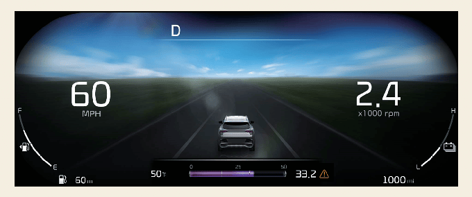 Si aucune information n'est reçue par le biais du GPS (e. g. vous n'êtes pas abonné au service Kia Connect), la météo et l'heure affichera « ensoleillé» et « nuit» sur le tableau de bord.