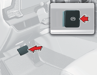 Si la situation ci-dessus se produit, appuyez sur la pédale de frein et relâchez le frein de stationnement électronique en appuyant sur le commutateur du frein de stationnement électronique.